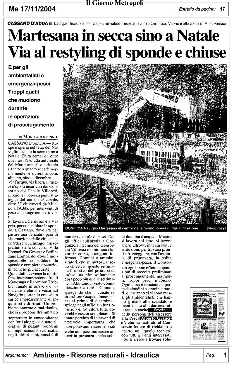 seguito un breve riassunto della situazione del Canale della Martesana