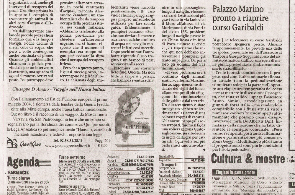 animalista per la tutela dei pesci dei navigli milanesi.